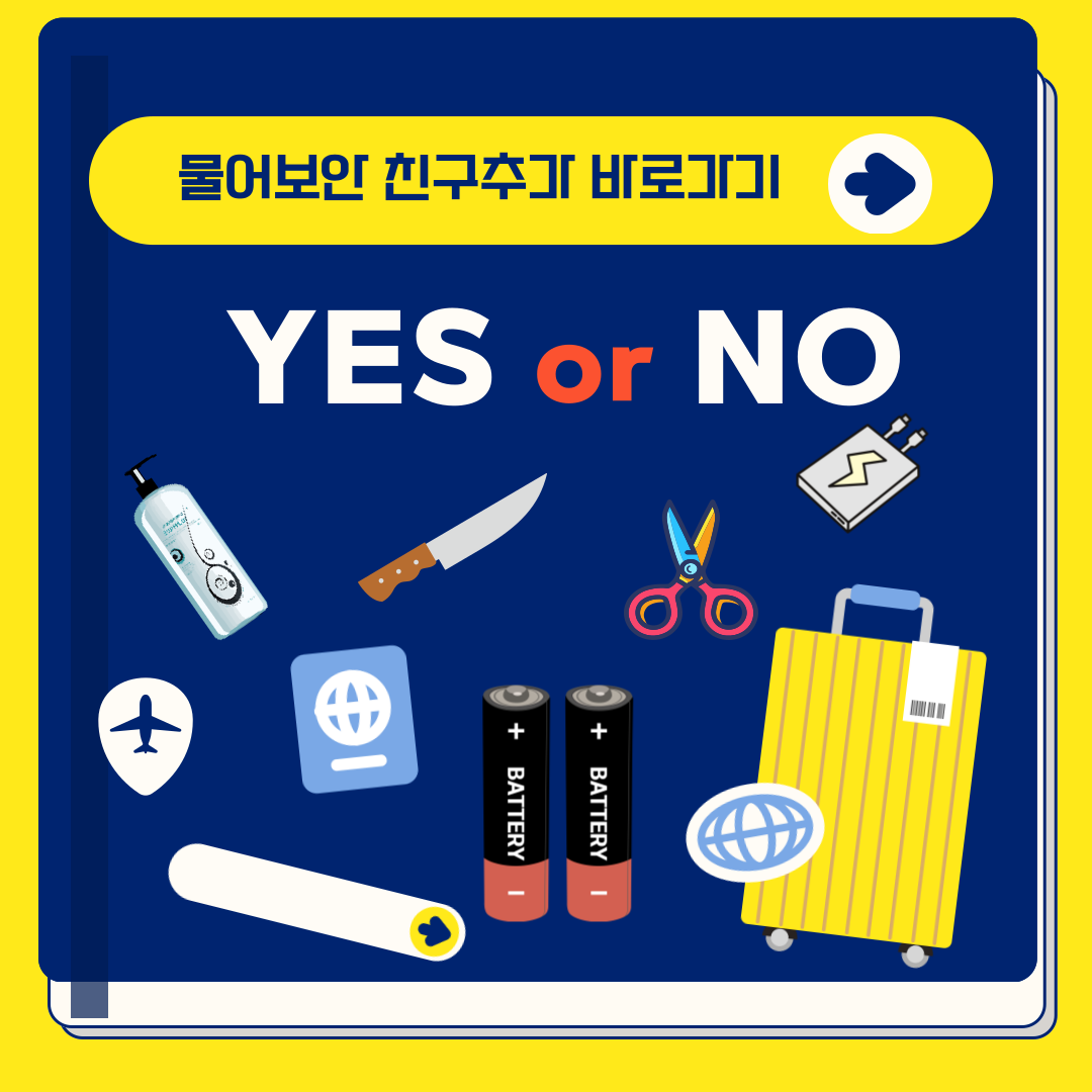 물어보안 카카오 채널을 통해 많은 분들이 헷갈려하시는 몇 가지 질문을 해보았습니다. 기내 반입 수하물 챙기실 때 참고하세요.