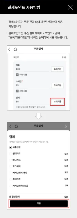 ✅ 결제전용 적립금 다운로드 (요일병 상이, 확인후 다운로드, 결제포인트 사용 시 "조회, 적용"반드시 클릭)